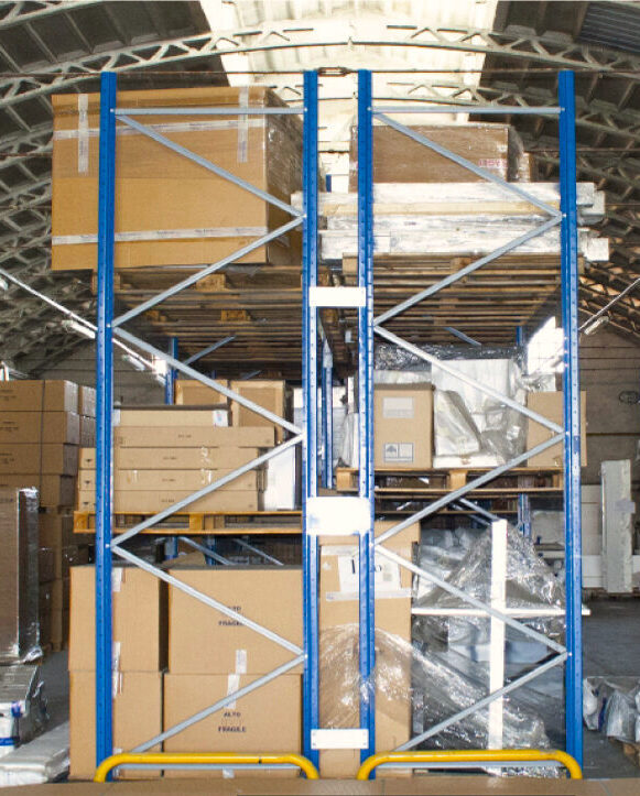 Il magazzino, con una superficie di 8000 mq, si occupa dello stoccaggio degli arredi, che possono essere riutilizzati in tutto o in parte in nuovi allestimenti.