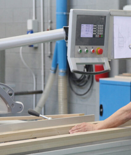 Si parte dal magazzino di materie prime, si prosegue nell'area macchine a controllo numerico e si arriva all'area di assemblaggio. Un'intera zona è dedicata alla lavorazione tradizionale del legno massello ed è dotata di tutti i macchinari idonei allo scopo.